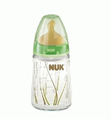 NUK First Choice Γυάλινο Μπιμπερό με Θηλή Latex 0-6m Πράσινο, 150ml