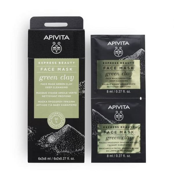 APIVITA Express Beauty Μάσκα Προσώπου Πράσινη Άργιλος για Βαθύ Καθαρισμό, 2x8ml