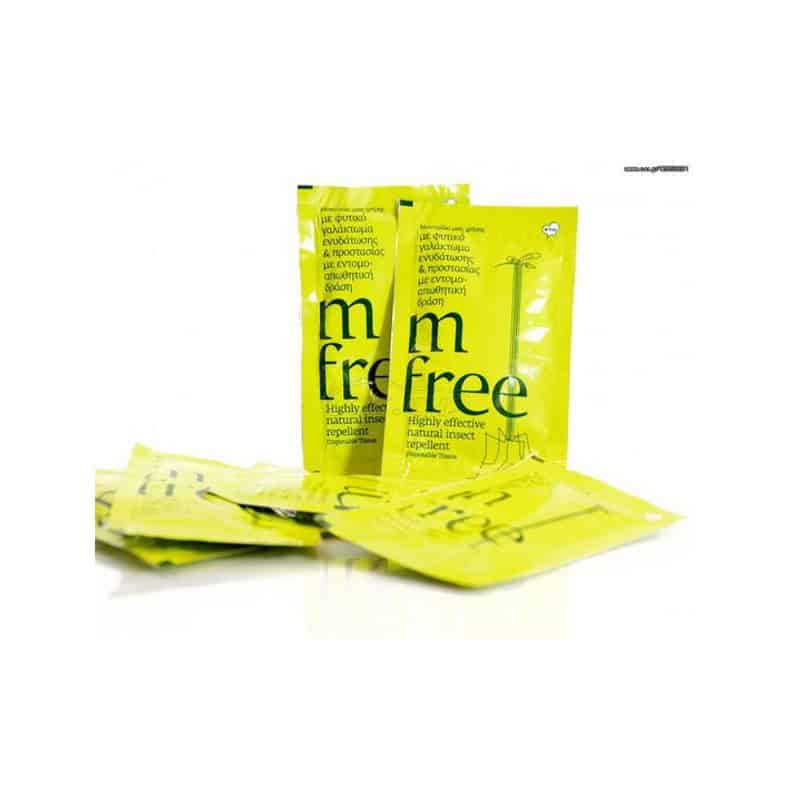 Ιδιαίτερο πρακτικό φυτικό εντομοαπωθητικό μαντηλάκι μιας χρήσης εμποτισμένο με τη μοναδική λοσιόν mfree.