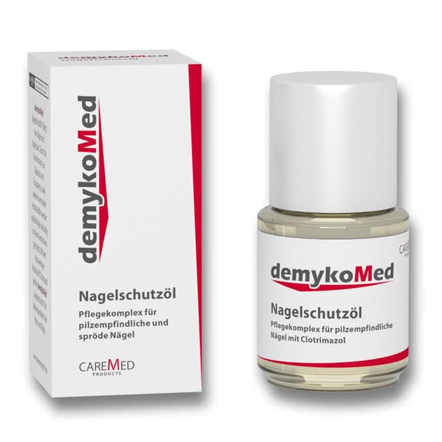 Συνδυασμός φροντίδας για εύθραυστα νύχια, ευαίσθητα σε μυκητίαση. Το demykomed Nagelschutzol φροντίζει και προστατεύει τα νύχια και τα επωνύχια. Ο ειδικός συνδυασμός Bisabolol και Tocopherol συν άλλα πολύτιμα συστατικά, εμπλουτίζουν τα νύχια και τα επωνύχια και ενυδατώνουν τα ξηρά και εύθραυστα νύχια. Με το υψηλής ποιότητας συστατικό Clotrimazole, το demykomed Nagelschutzol αυξάνει την άμυνα του δέρματος και των νυχιών.