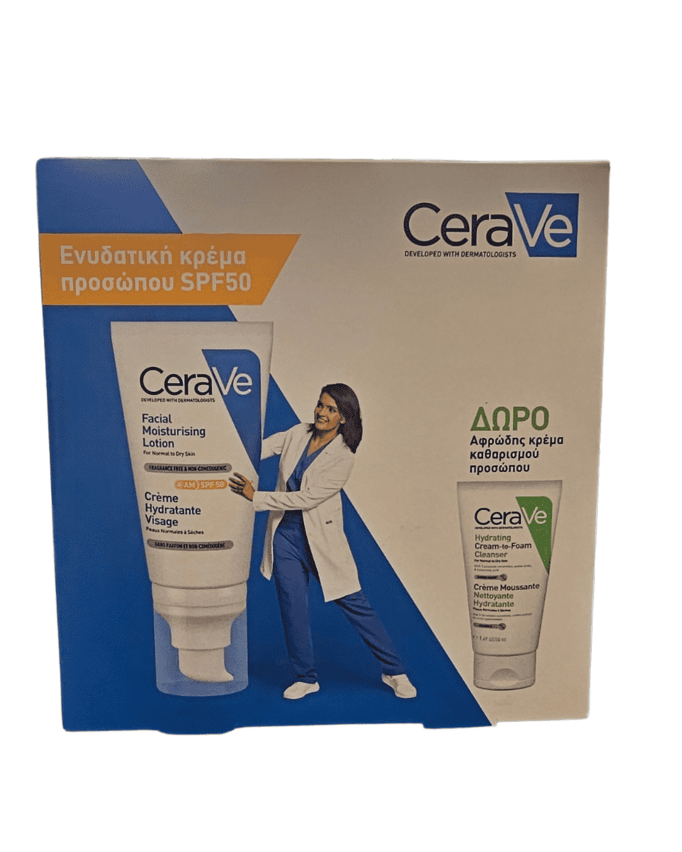 CERAVE Promo AM Facial Moisturising Lotion Ενυδατική Κρέμα Προσώπου με SPF50 52ml & ΔΩΡΟ Hydrating Cream-to-Foam Cleanser Αφρώδης Κρέμα Καθαρισμού Προσώπου 50ml, 1τμχ