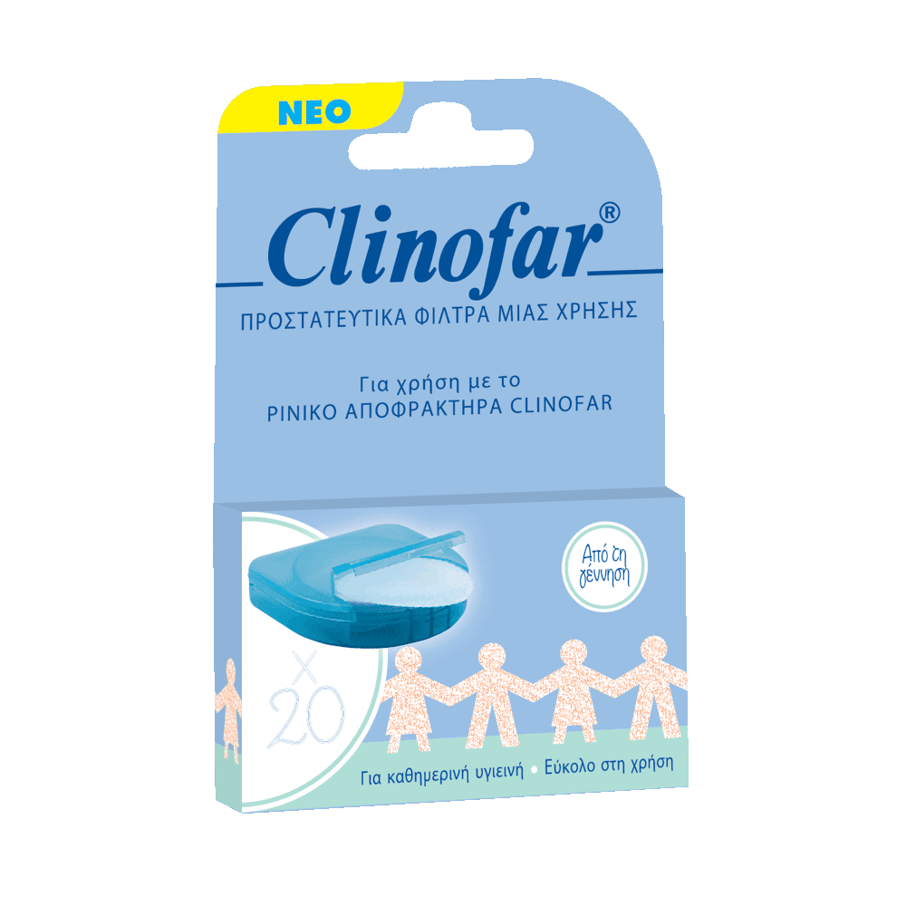 Τα προστατευτικά φίλτρα μιας χρήσης Clinofar συνιστώνται για χρήση με το Ρινικό Αποφρακτήρα Clinofar®.