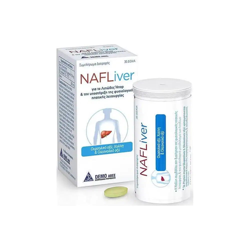 Το Nafliver είναι ένα συμπλήρωμα διατροφής για το λιπώδες ήπαρ και την υποστήριξη της φυσιολογικής λειτουργίας του ήπατος. Περιέχει χολίνη και εκχύλισμα Prunus mume τιτλοδοτημένο σε ολεανολικό και ουρσολικό οξύ.