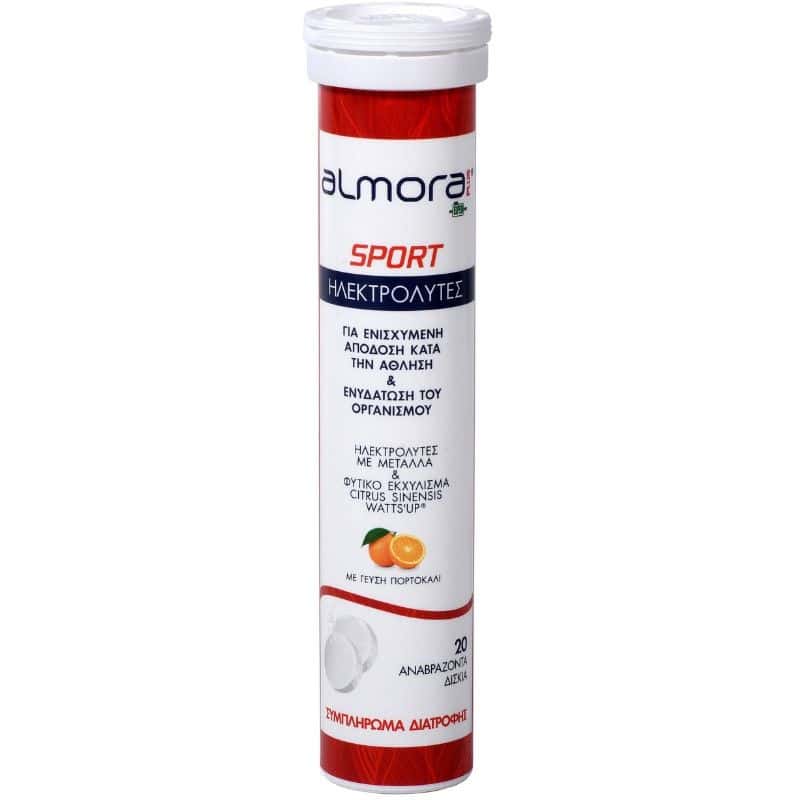 To almora PLUS SPORT είναι συμπλήρωμα διατροφής σε αναβράζουσα μορφή με συνδυασμό Ηλεκτρολυτών (Na, K, Cl), Ασβεστίου (Ca), Μαγνησίου (Mg) και του φυτικού εκχυλίσματος Citrus sinensis.