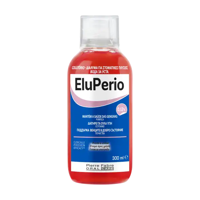Συμβάλλοντας στην καλή στοματική υγιεινή, το διάλυμα για στοματικές πλύσειςELUPERIOβοηθάει στην καταπολέμηση του σχηματισμού οδοντικής πλάκας και εμποδίζει την ανάπτυξη ή την επιδείνωση των προβλημάτων στα ούλα.