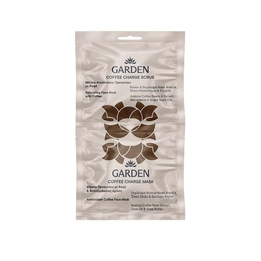 GARDEN Coffee Charge Μάσκα Απολέπισης & Μάσκα Προσώπου με Κόκκους & Εκχύλισμα Καφέ Arabica, 2X8ml
