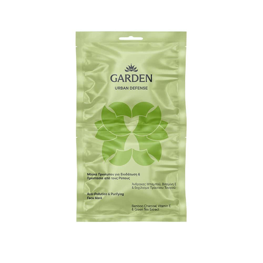 GARDEN Urban Defense Μάσκα Προσώπου για Ενυδάτωση & Προστασία από Ρύπους με Άνθρακα Μπαμπού & Εκχύλισμα Πράσινου Τσαγιού, 2x8ml