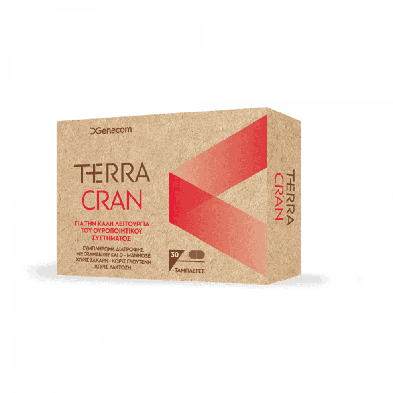 Το Genecom Terra Cran είναι ένα συμπλήρωμα διατροφής με κράνμπερι και μαννόζη για την ενίσχυση του ουροποιητικού συστήματος.