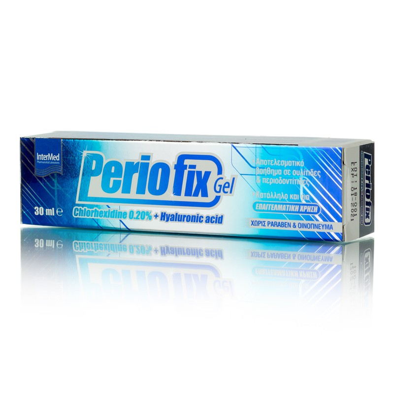 Το Periofix 0.20% GEL με χλωρεξιδίνη 0.20% & υαλουρονικό οξύ, αποτελεί ειδικά σχεδιασμένη γέλη με μακράς διάρκειας παραμονή και δράση, κατάλληλο για εντοπισμένες κακώσεις της στοματικής κοιλότητας, και για την αντιμετώπιση της ουλοοδοντικής πλάκας. Το υαλουρονικό οξύ συμβάλλει στην επιτάχυνση της φυσικής διαδικασίας ανάπλασης και επούλωσης των μαλακών ιστών της στοματικής κοιλότητας, καθώς και στην ενυδάτωση της πάσχουσας περιοχής.