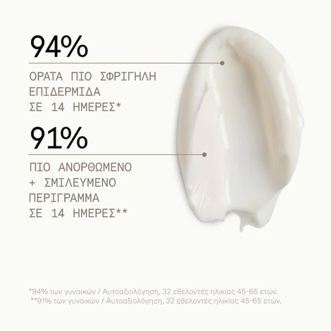 *94% των γυναικών που δοκίμασαν το KORRES Μαύρη Πεύκη Κρέμα Ημέρας Σύσφιγξη + Lifting Κανονικές – Μικτές Επιδερμίδες / Τεστ αυτοαξιολόγησης, 32 εθελοντές ηλικίας 40-65 ετών