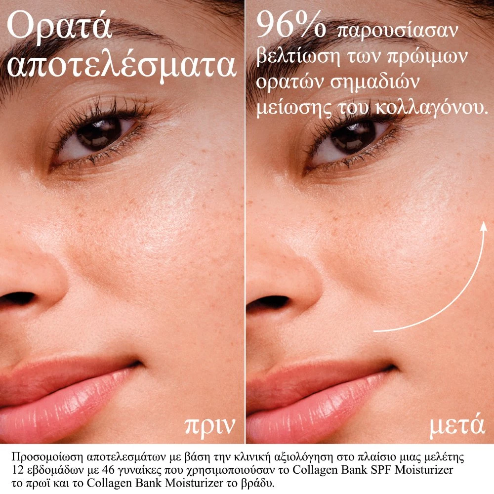 Το κολλαγόνο ως κλειδί για νεανική επιδερμίδα, ενισχύει την παραγωγή φυσικού κολλαγόνου, συσφίγγει και λειαίνει τις λεπτές γραμμές και τις ρυτίδες προσφέροντας ταυτόχρονα και άμεση αίσθηση ενυδάτωσης. Από την ηλικία των 20 ετών, η επιδερμίδα σας χάνει έως και 1% κολλαγόνου ετησίως και γι’ αυτό ακριβώς χρειάζεται περιποίηση που θα επιβραδύνει αυτή τη διαδικασία. Η ενυδατική κρέμα Neutrogena Collagen Bank ενδυναμώνει το κολλαγόνο που ήδη υπάρχει στην επιδερμίδα σας και ταυτόχρονα ενισχύει τον σχηματισμό νέου, ώστε η επιδερμίδα να φαίνεται πιο γεμάτη και νεανική. Η πατενταρισμένη τεχνολογία μικροπεπτιδίων διεισδύει βαθύτερα από τα συνηθισμένα πεπτίδια και ενισχύει στοχευμένα τη σφριγηλότητα και την ελαστικότητα της επιδερμίδας. Χάρη στην περιεκτικότητά της σε βακουχιόλη, μια φυτική εναλλακτική λύση της ρετινόλης, καταπολεμά τα πρώτα σημάδια γήρανσης και αφήνει την επιδερμίδα ορατά πιο λεία.![]()