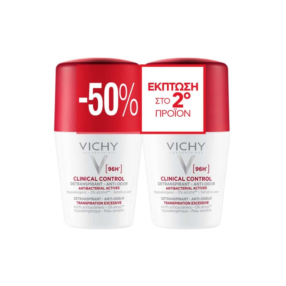 VICHY Promo Deodorant Ανδρικό Αποσμητικό Clinical Control Roll-On 96Η με -50% Έκπτωση στο 2ο Προϊόν, 2x50ml