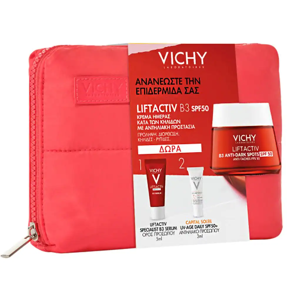Σετ με Νεσεσέρ που περιέχει 1) Liftactiv Specialist B3 Κρέμα Προσώπου για Κηλίδες με SPF50 50ml, 2) Liftactiv Specialist B3 Ορός Προσώπου 5ml και 3) Capital Soleil UV-Age Daily SPF50+ Αντηλιακό Προσώπου 3ml.